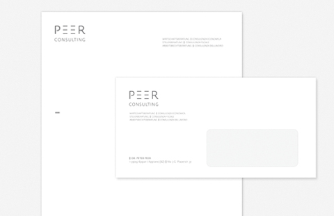 Peer ConsultingLogo, Brieffamilie, Beschilderungen Firmensitz, Internestseite.